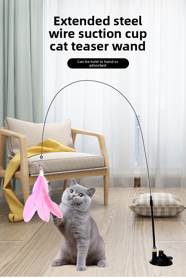 Extended Steel Wire Suction Cup Cat Teaser Wand