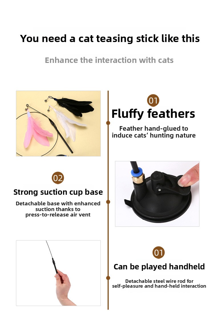 Hands-Free Interactive Cat Toy | Flexible Steel Rod | Strong Suction Base
