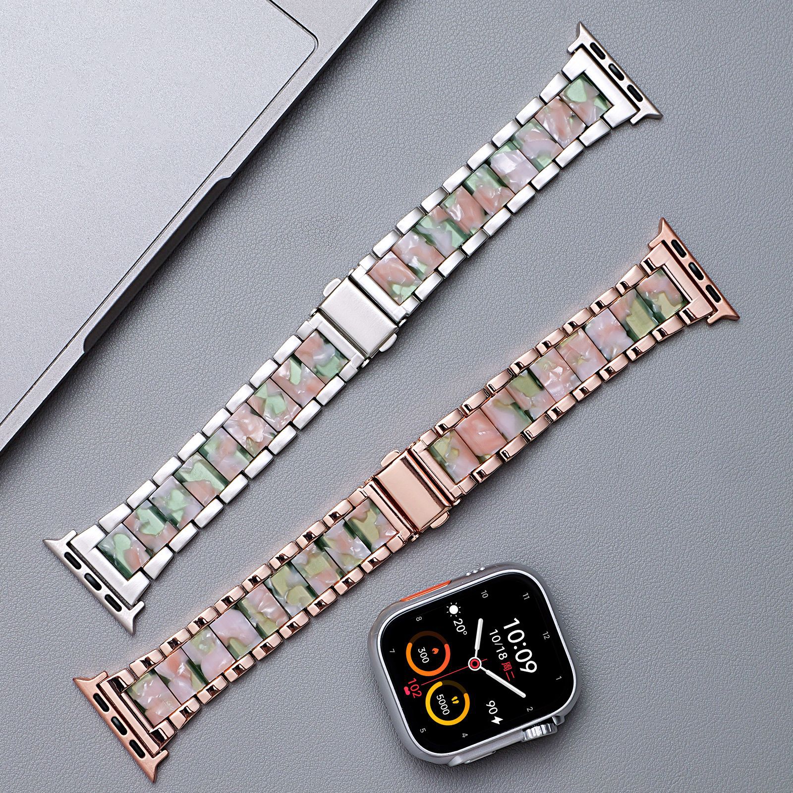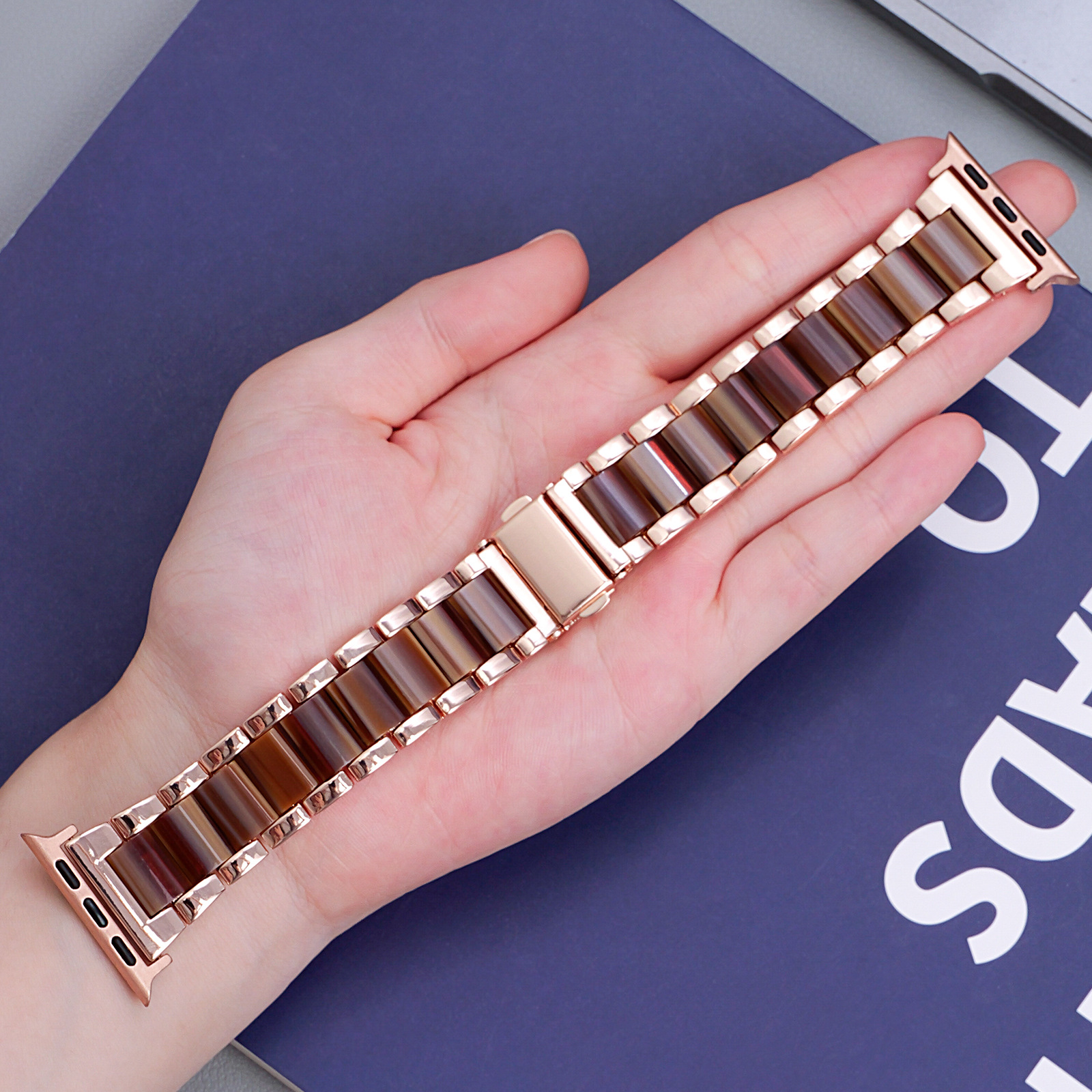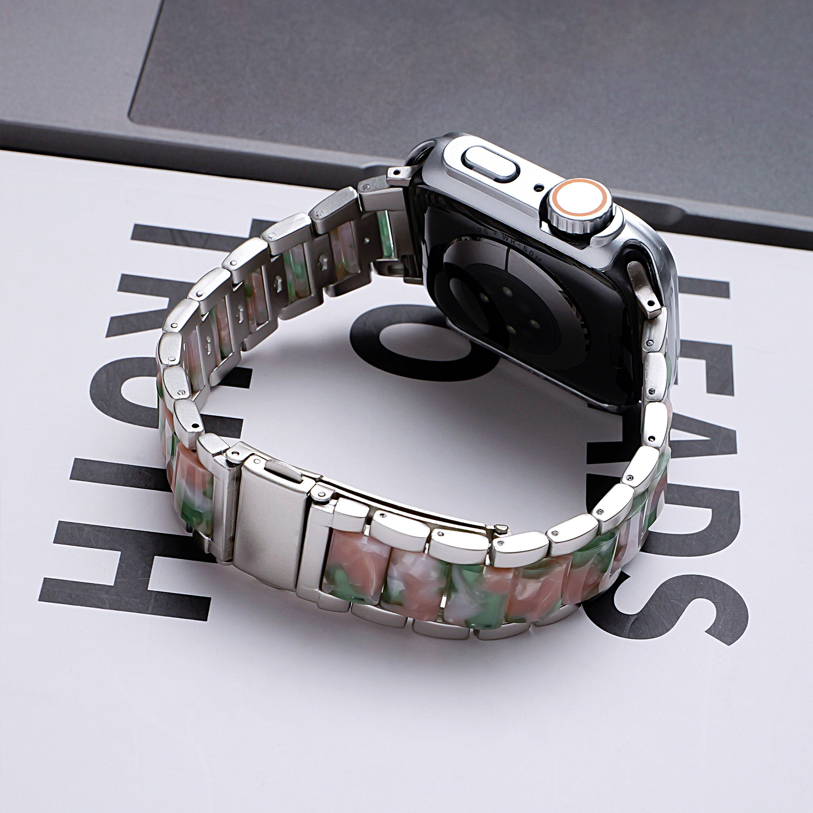 Metal Rainbow Resin Apple Watch Strap – Three-Bead Folding Buckle Replacement Band