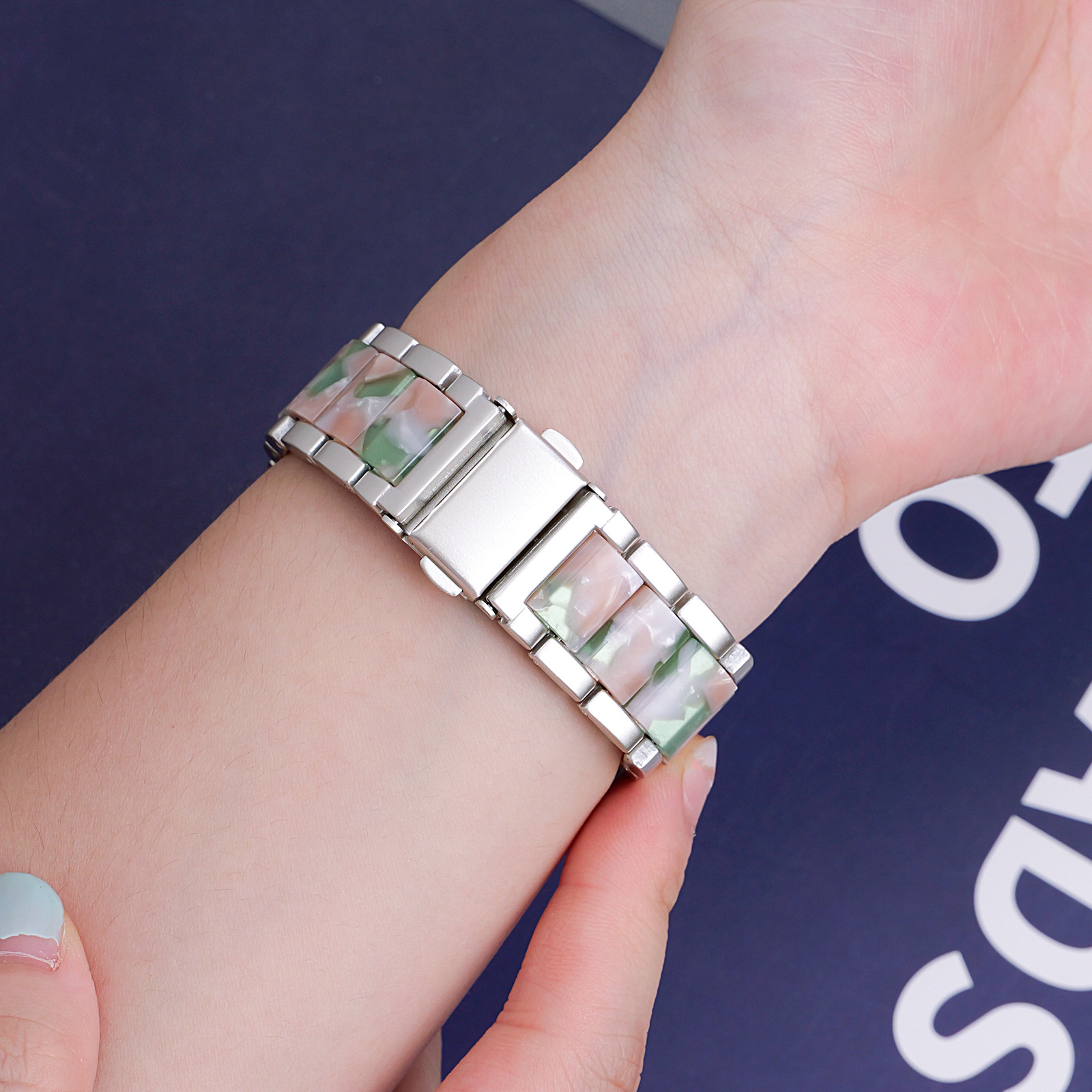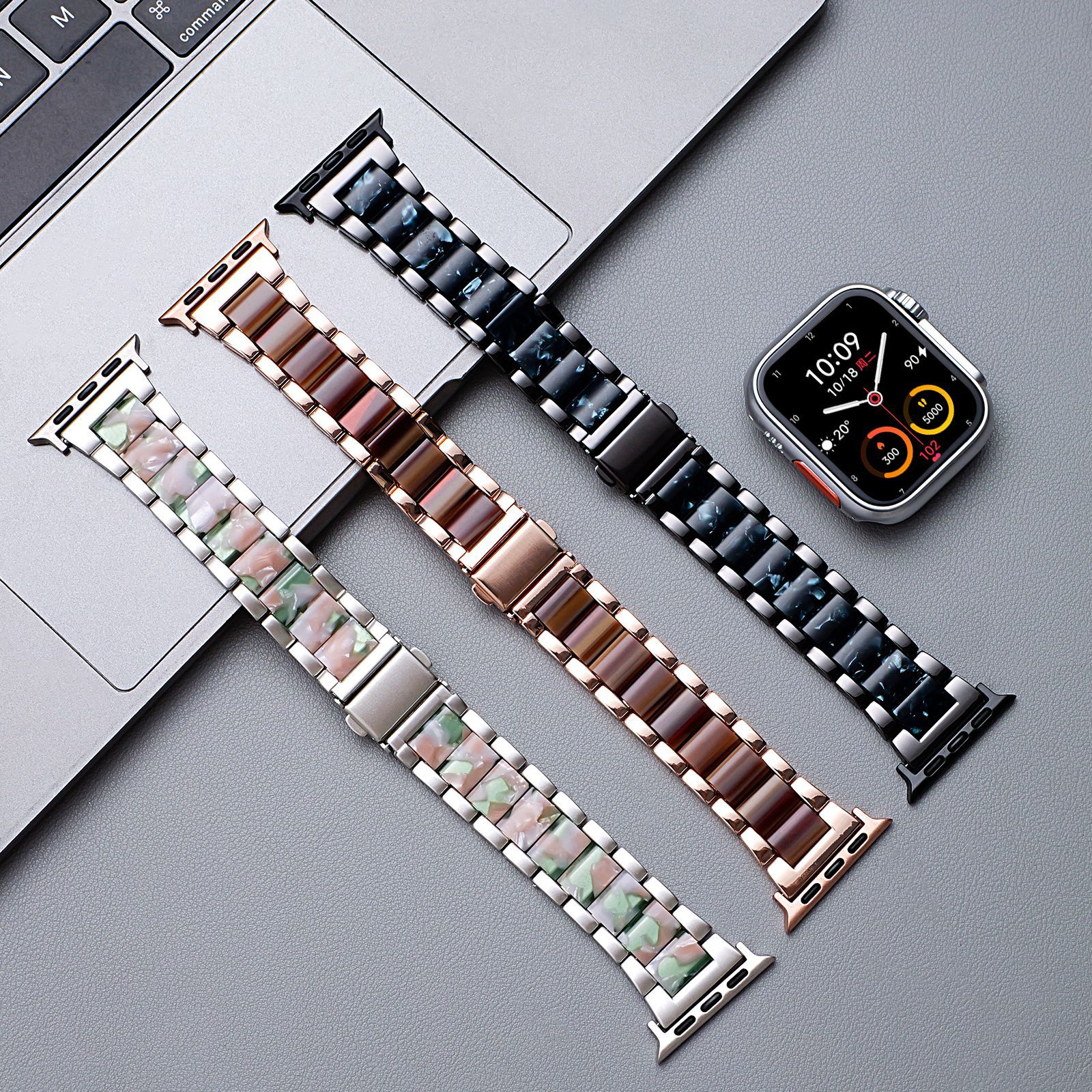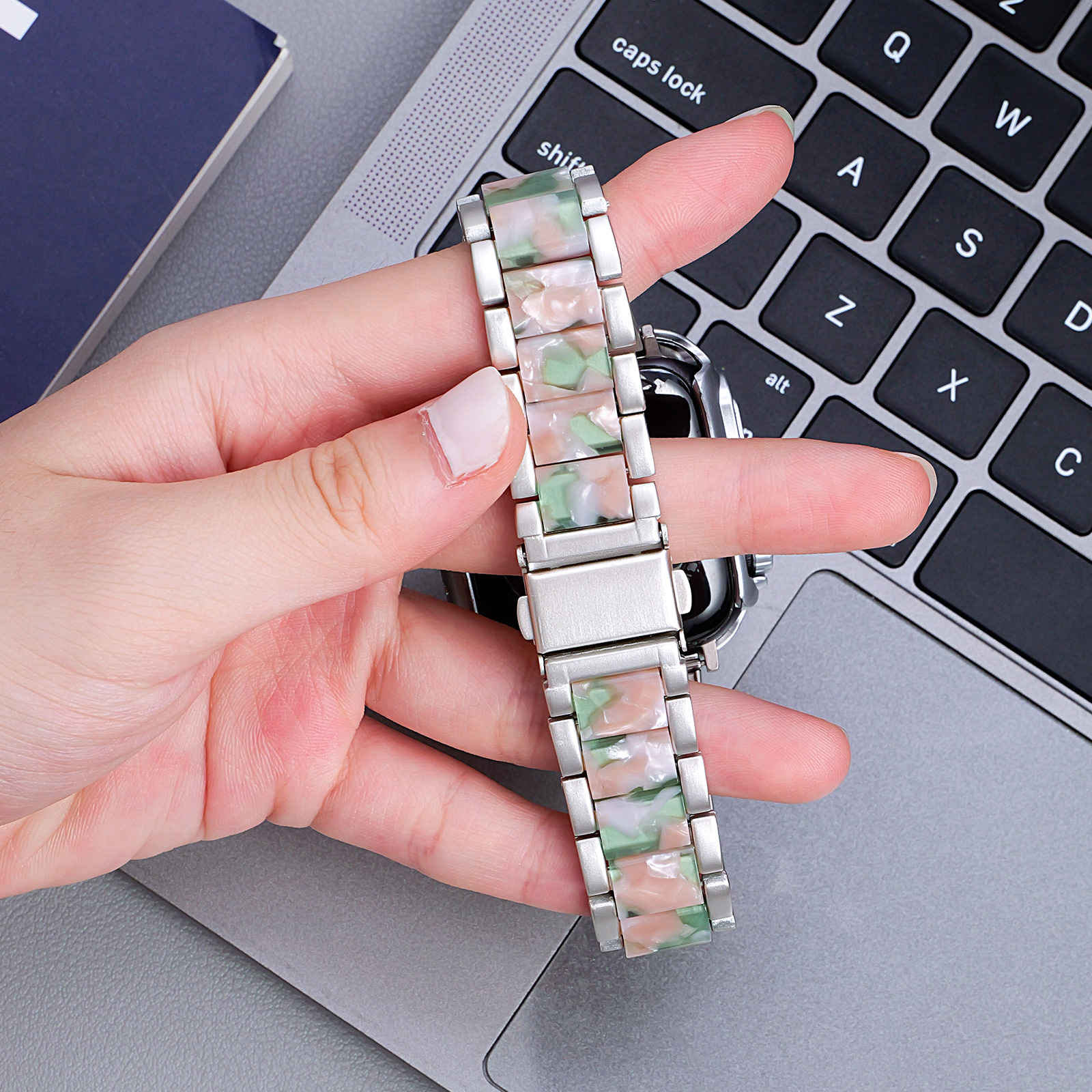 Metal Rainbow Resin Apple Watch Strap – Three-Bead Folding Buckle Replacement Band