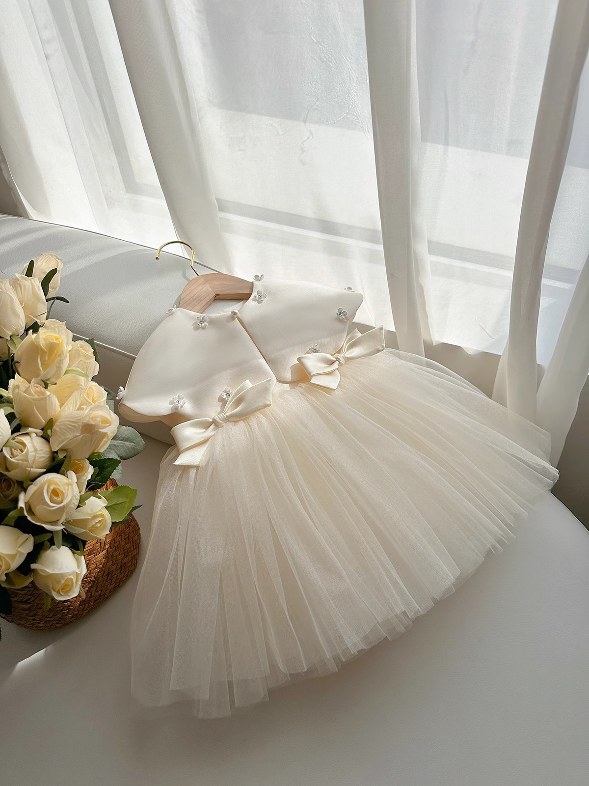 Make special occasions even more memorable with this girls princess tutu dress, designed with elegant details perfect for celebrations and formal events. The dress features a beautiful layered tutu-style skirt paired with a matching detachable shawl, creating a graceful and charming look suitable for birthdays, parties, and seasonal gatherings.