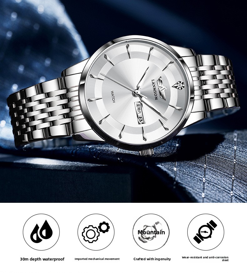 With 30-meter water resistance, this watch is suitable for everyday activities such as hand washing and light splashes. The secure butterfly double-button clasp keeps the watch comfortably in place while adding a polished finishing touch to the design.