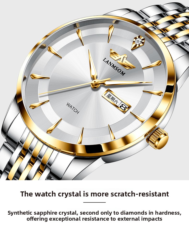 Precision Quartz Movement: Reliable and accurate timekeeping performance.