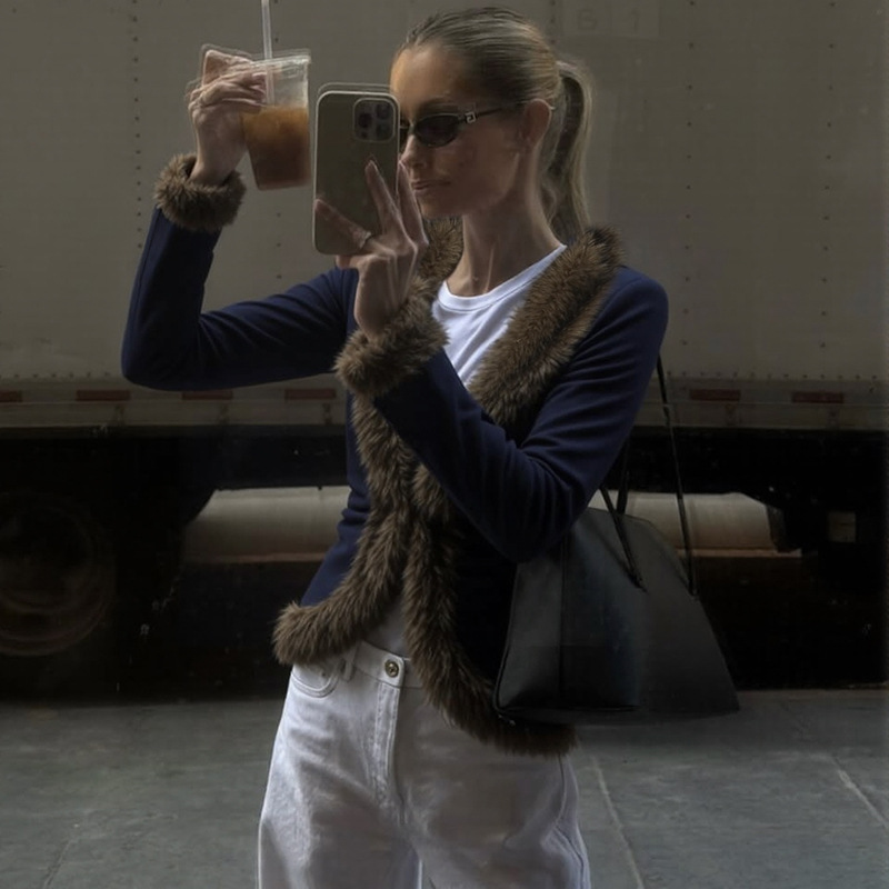 Slim Fit V-Neck Jacket – Plush Detail Streetwear Cardigan